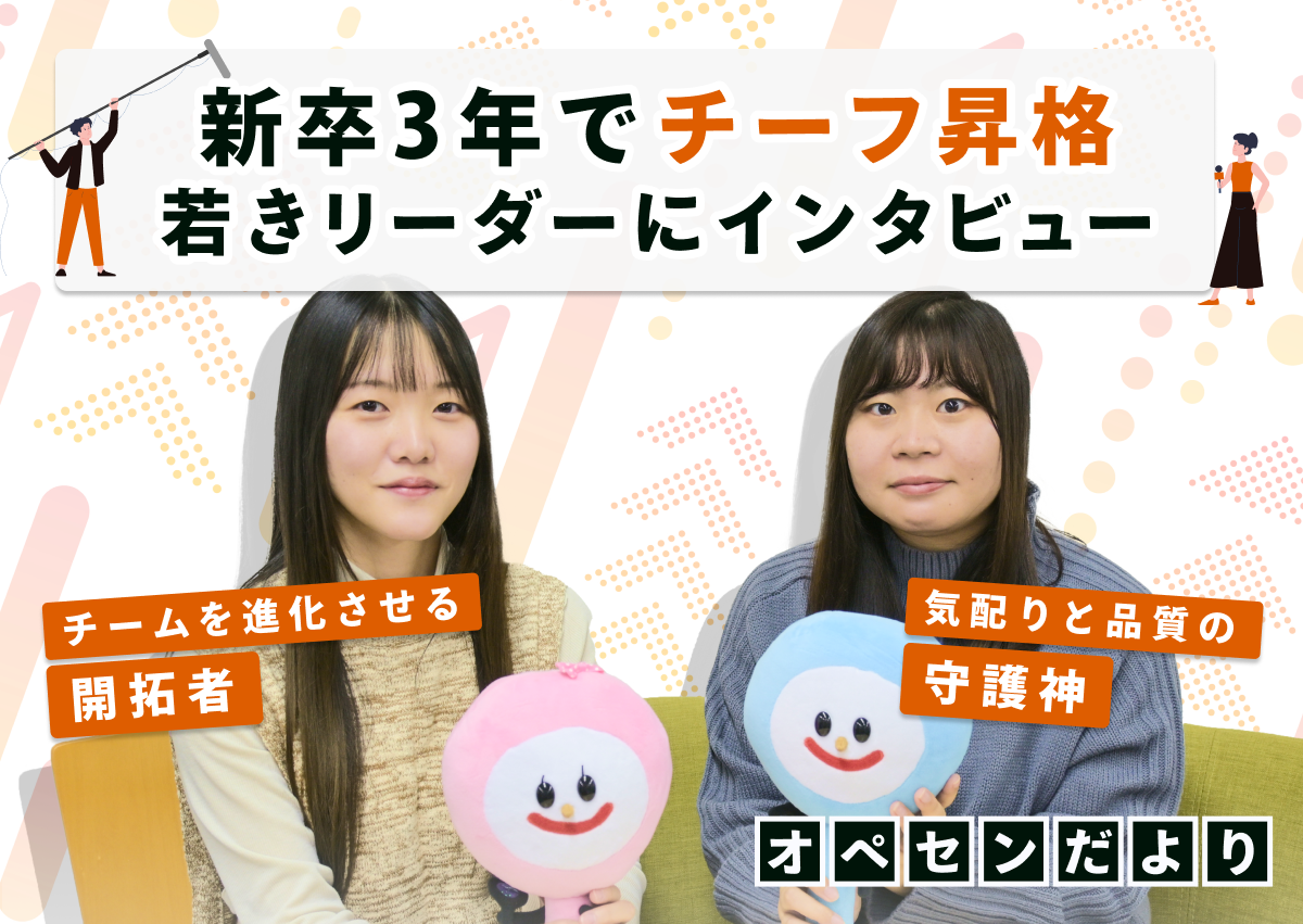 今回は、新卒入社から 3 年というスピードで、トレーナー(主任クラス)からチーフ(係長クラス)に昇格されたみやさん、おさよさんの 2 名にインタビューをしました。